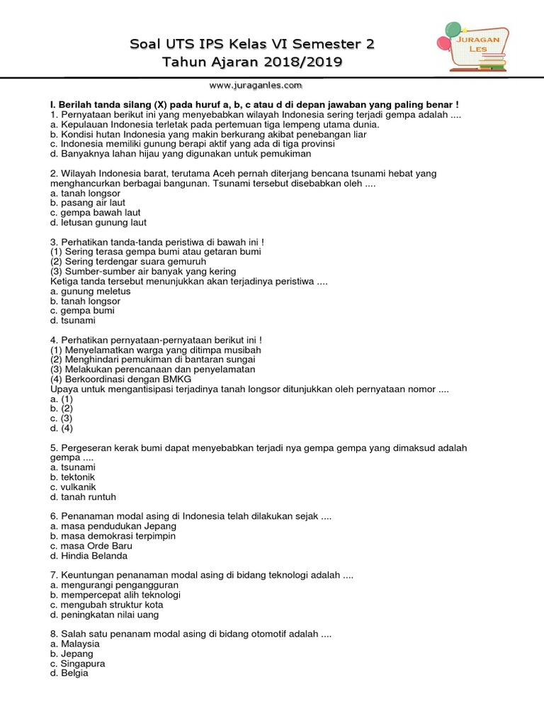 Soal Bam Kls 6 Uts 2 Ta 2019/2020 : Soal Ujian Kelas 6 2020 Ilmusosial Id